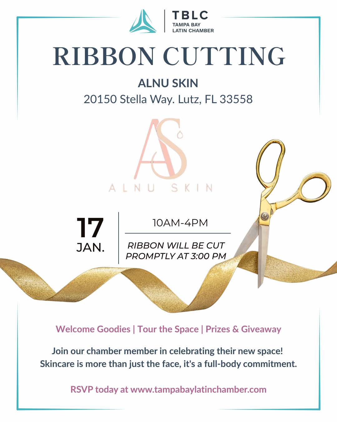 RSVP Today: https://www.eventbrite.com/e/alnu-skin-grand-opening-event-tickets-1980014581915?aff=ebdssbcategorybrowse